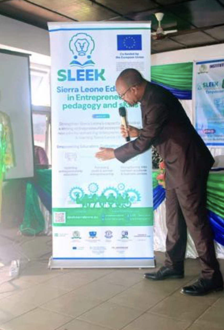 The SLEEK Campus Launch showcased the project’s mission to integrate entrepreneurial pedagogy into higher education, fostering innovation and industry collaboration. Funded by the Erasmus+ Capacity Building in Higher Education program, SLEEK unites five Sierra Leonean institutions and two European partners to enhance curriculum design, lecturer training, and student-led ventures. The event featured keynote speeches, interactive discussions, and a ceremonial unveiling of the SLEEK banner, symbolizing the university’s commitment to practical, market-driven education.