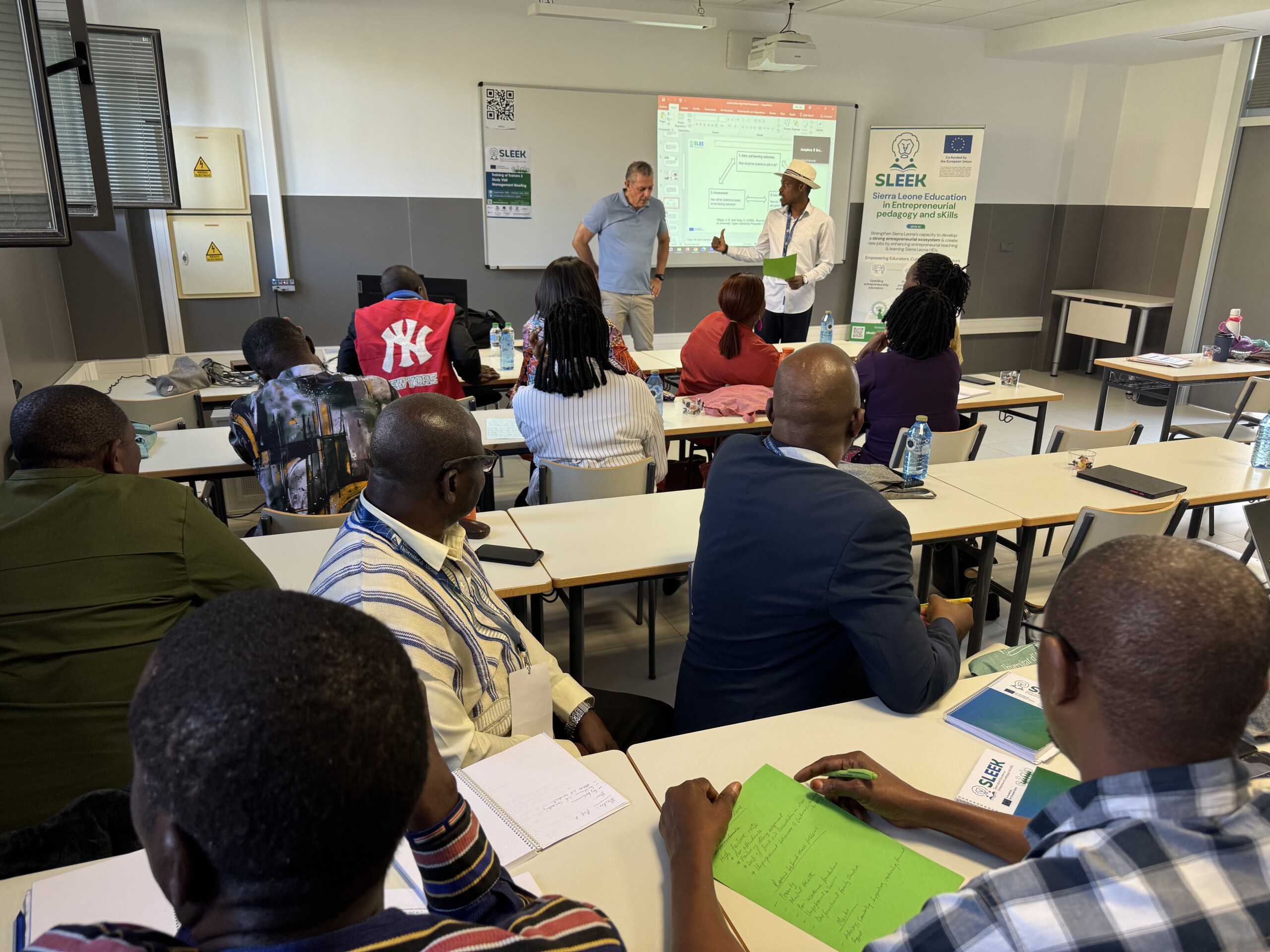 Image Oct 06, 2025 From 29 September to 2 October 2025, the University of Alicante (UA) hosted the second Training of Trainers (ToT2) of the Erasmus+ SLEEK project (Sierra Leone Education in Entrepreneurial Pedagogy and Skills), which also included a management meeting and a study visit.The programme began with the management meeting, held at the Faculty of Education at the University of Alicante, where the consortium started preparing the next phases of the project, including the upcoming Training of Trainers to be held in Freetown, Sierra Leone.The training was organised over several sessions, combining theoretical content with practical activities. Topics addressed included the generation and evaluation of business ideas and the identification of opportunities, delivered by Professor Antonio Antón (Department of Business Organisation, UA); creativity as a source of value and the development of entrepreneurial competences, led by Eduardo Sánchez (Department of Business Organisation, UA); the application of active learning methodologies in the classroom, presented by Javier Martínez Falcó (Department of Business Organisation, UA); and self-awareness in the entrepreneurial context, delivered by María Martínez Lirola (Department of English Studies, UA).The study visit, in turn, focused on gaining first-hand insight into the University of Alicante’s institutional strategies in lifelong learning, micro-credentials and continuing education. In this context, Teresa Torregrosa, Director of the Centre for Continuing Education at UA, presented the university’s institutional model for lifelong learning, while Rosana Satorre and Maximiliano Saiz, from the Institute of Education Sciences (ICE), shared their experience in teacher training. In addition, initiatives for inter-university collaboration in entrepreneurship education were presented, including the BIKE project, introduced by Noelia López from the Institutional Projects Office of the University of Alicante (OGPI). This meeting helped establish methodological and pedagogical foundations intended to serve as a bridge for generating and developing practices that can be transferred to the institutional contexts of Sierra Leone.
